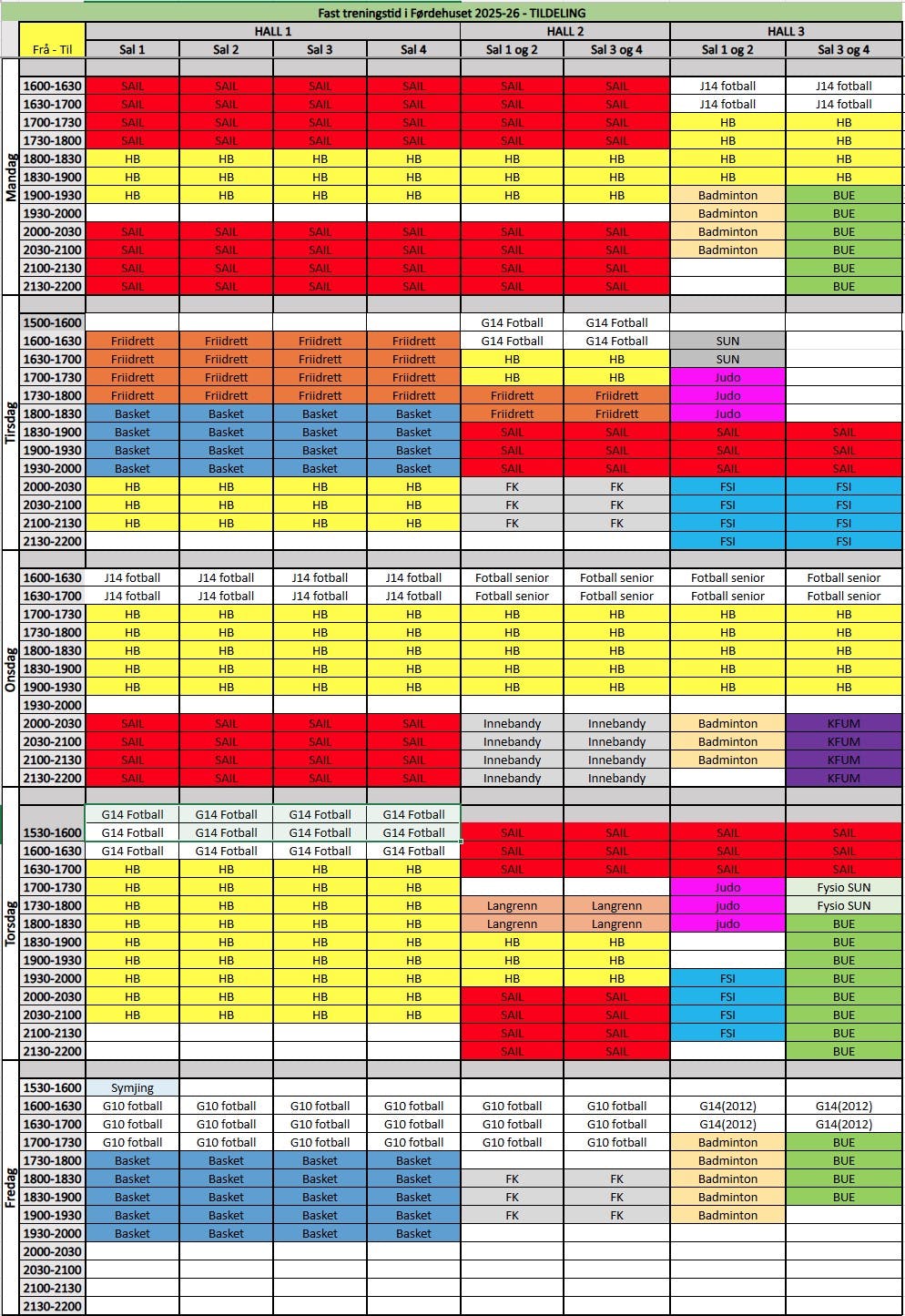 Merk: På grunn av VM i vektløfting vert heile idrettshallen stengd frå og med 19. september til og med 19. oktober.