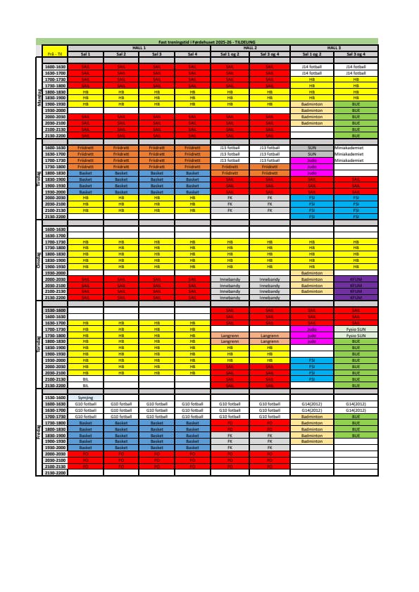 Dagar der idrettshallen er stengd høsten 2025